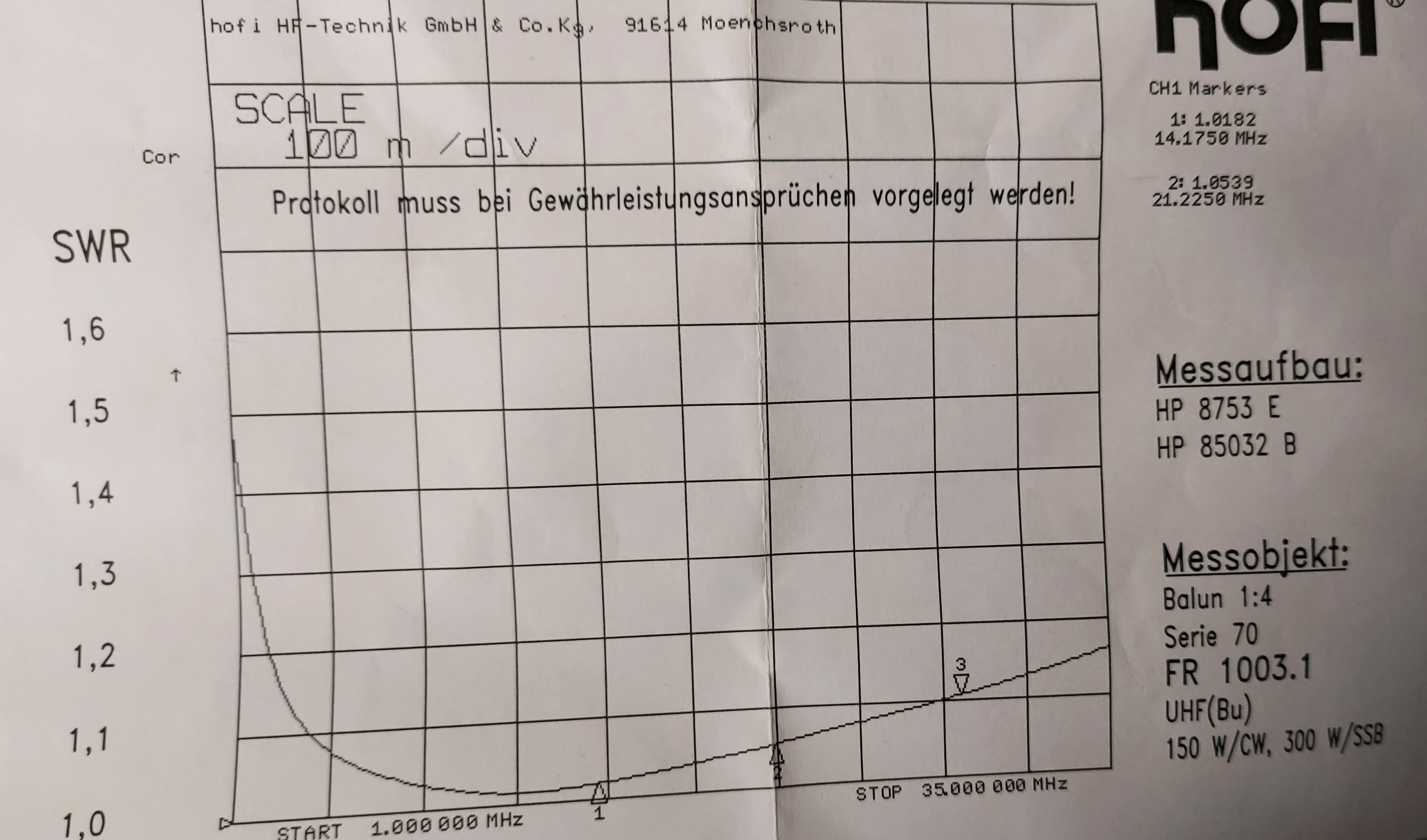 Voltage Balun für Symetrische Antennen mit speisepunkt Wiederständen 100 ... 400 Ohm bei ungestörtem Freiraum.