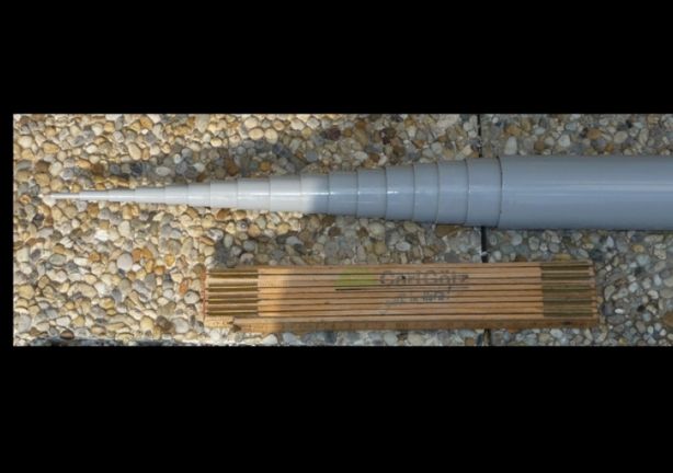 Beim Aufbau des Masten werden die einzelnen Rohre auseinander gezogen und gegeneinander mit der Hand verdreht. Beginnen Sie mit dem dünnsten Element und ziehen Sie die Elemente nacheinander aus. Beim Abbau verfahren Sie genau umgekehrt. Zuerst wird das zweitdickste Element eingeschoben, dann das drittdickste und so weiter. Bei den unteren dickeren Rohren kann natürlich mehr Kraft angewendet werden, als bei den dünneren oberen Mastteilen. Wird die Spitze entfernt, darf diese nicht im Mast verbleiben, da die Rohre sonst beim Zusammenschieben beschädigt werden könnten. Ferner muss der Mast dann oben abgedichtet werden, damit kein Wasser eindringt.