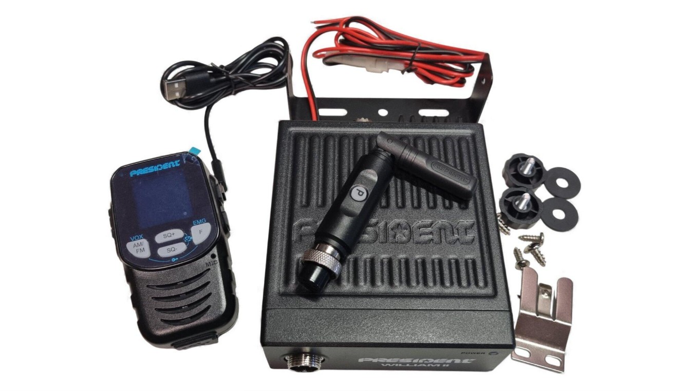 Es ist NICHT (!!!) mit der Reichweite eines Liberty Mic vergleichbar, was ja "damals" im DECT-Standard ausgeführt war. Das Bedienteil der William 2 besitzt ein grosses beleuchtetes Farbdisplay mit gutem Kontrast und beleuchtete Funktionstasten und ermöglicht somit auch die einfache Bedienung bei Nacht. Als Option wird es später noch eine drahtlose PTT-Taste mit Kanalwahltasten für das Lenkrad geben. Auch hier wurde das von President patentierte echte ASC-System (automatische Rauschsperre) integriert.