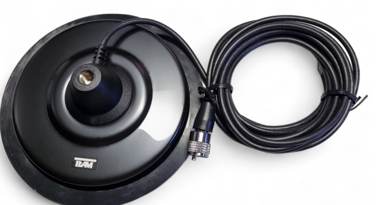 Mit Gummi-Kratzschutz auf der Unterseite und 4 Meter RG58-Koaxkabel mit angelötetem PL-Stecker.
