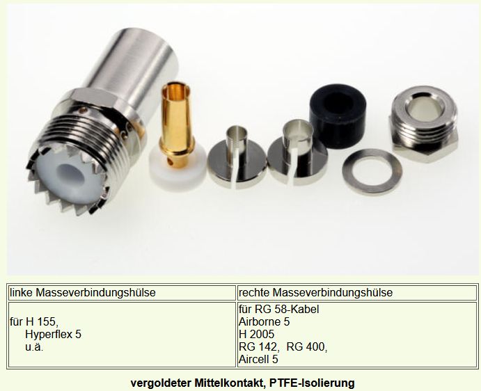 PL22TG, UHF Kabel-Buchse für unsere 5 mm-Koaxialkabel