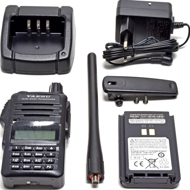 Mit dem FT-4XE erhalten Sie bereits einen 1750mAh Li-Ion-Akkupack, einen Tisch-Schnelllader mit Netzadapter, einen stabilen Gürtelclip und natürlich eine Gummi-Wendelantenne.