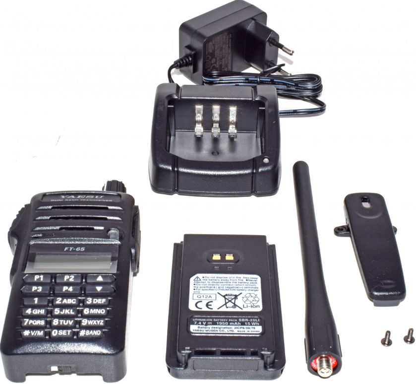 Mit dem FT-65E erhalten Sie bereits einen 1950mAh LiIon-Akkupack, einen Tisch-Schnelllader mit Netzadapter, einen stabilen Gürtelclip und natürlich eine Gummi-Wendelantenne.